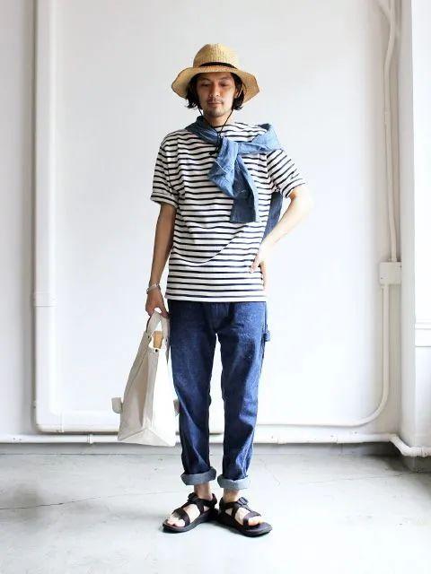 The classic combination of a thin blue and white striped T-shirt and jeans is very versatile. This combination will almost never go out of style, so if you can handle this combination well, you can be fashionable every summer.