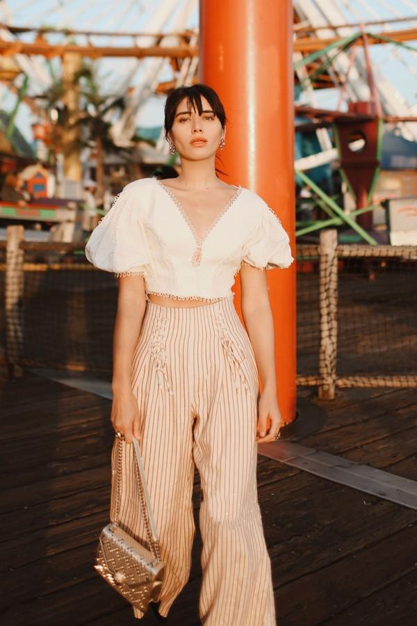 There are many styles of waist-baring short-sleeves. When matching, you must choose according to your body shape. For example, if you are taller, you can choose a small round neck or high-neck waist-baring short sleeves, which can better highlight your delicate facial features. People who are not tall are not suitable for high-necked waist-baring tops, because it will lower the person’s height, thus affecting the overall effect of the outfit.
