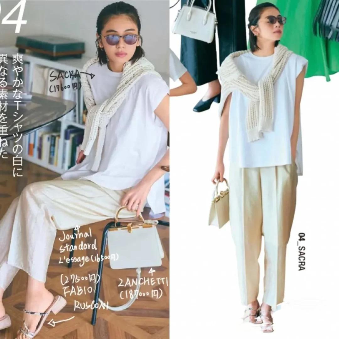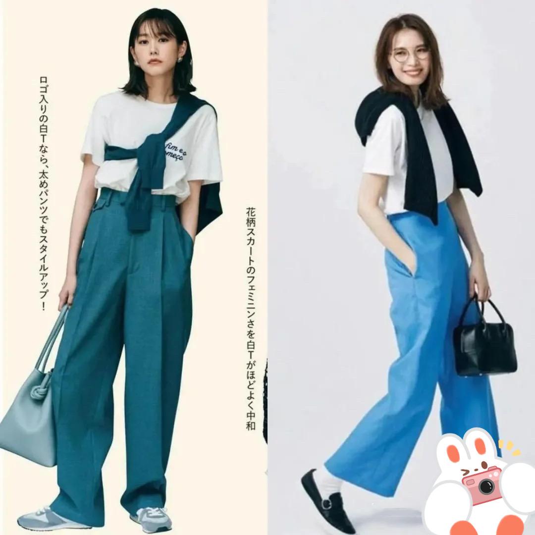 A combination that is particularly neat and elegant and suitable for commuting, the refreshing white T-shirt T-shirt, paired with high-waisted tapered trousers, gives people a neat and high-end aesthetic. Tapered trousers are a design that is wider at the top and narrower at the bottom, which can better modify the shape of the legs.