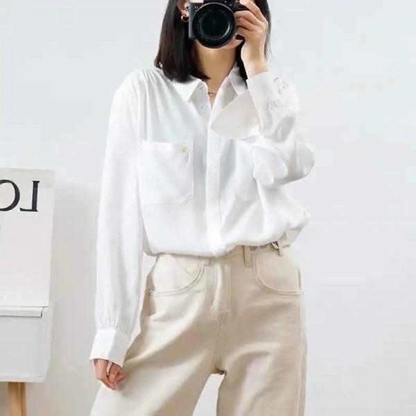White shirts are very versatile, fashionable, and very suitable for spring and summer seasons. They look cleaner and more refreshing when paired with pants of the same color. The outfit adds to the overall sense of fashion. The loose fit is slightly lazy, comfortable and high-end.