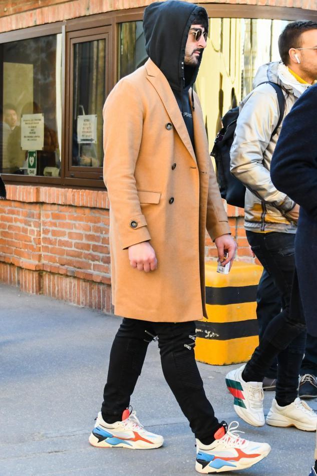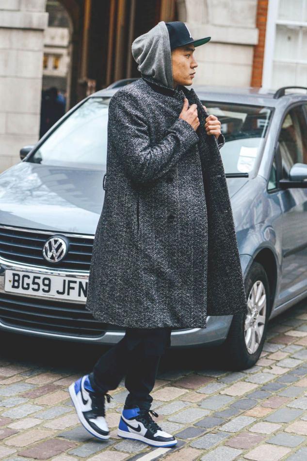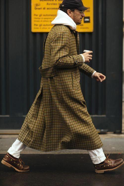The gray plaid coat, regardless of the size of the plaid pattern, its high-end gray tone instantly enhances the style of the look. When paired with a hooded sweatshirt, this coat style is usually not too long and looks very clean and neat. At this time, a hip-hop style baseball cap is trendy and fashionable.