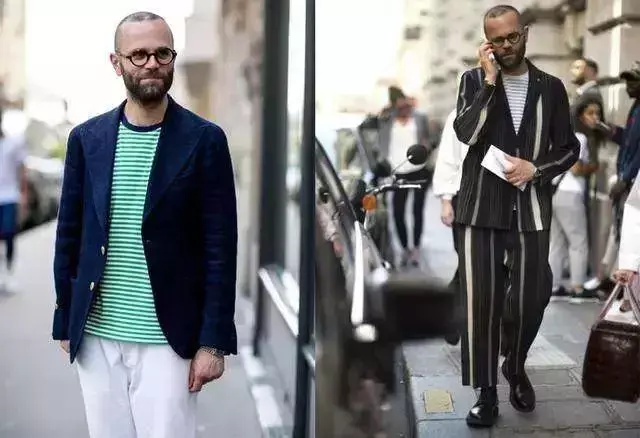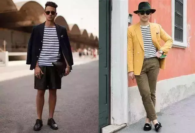 Generally choose a T with horizontal stripes to add a sense of hierarchy, but don’t wear a suit jacket with the same stripes on the T, otherwise it will make people dizzy.