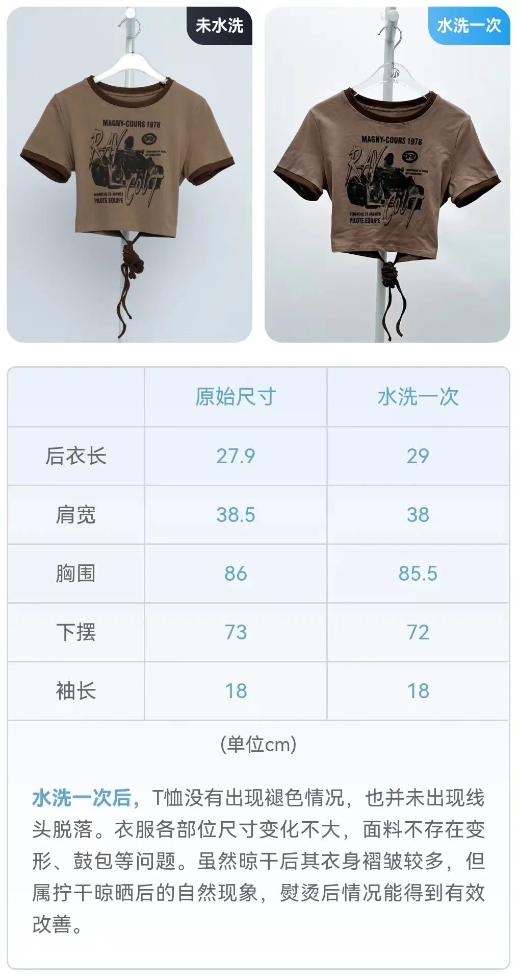 The fabric is made of 5% spandex, which has good elasticity and a smooth feel. After experimental testing, although its air permeability is average, the color fastness to hand washing is good, the color does not fade when washed, and the quality is acceptable.