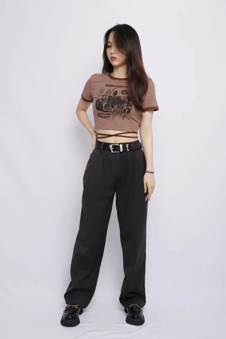 This year has set off a trend of “hot girl style” outfits with bold skin exposure and contrasting color designs as key elements, making T-shirt outfits more personalized. This issue recommends this KLalien retro printed short-sleeved T-shirt. The fabric, pattern and workmanship are all good. It can look taller and slimmer when paired with high-waisted pants.