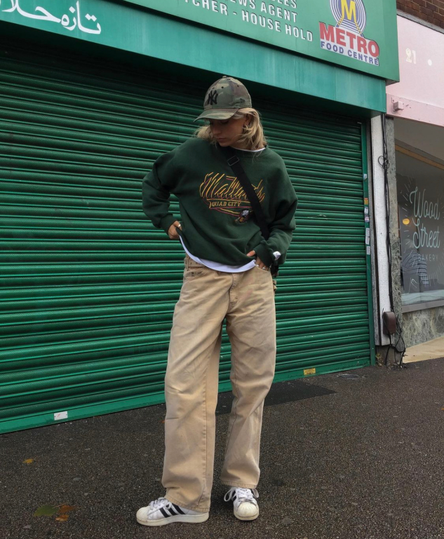 In terms of style, it is recommended that you choose a slightly loose fit. If it is too tight, it will give people a restrictive feeling and make you uncomfortable to wear. White loose casual trousers paired with a light blue pullover sweatshirt are simply not too stylish! Paired with a pair of sneakers, you will look like an urban beauty when commuting, and you will also be completely fashionable in daily life.