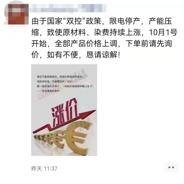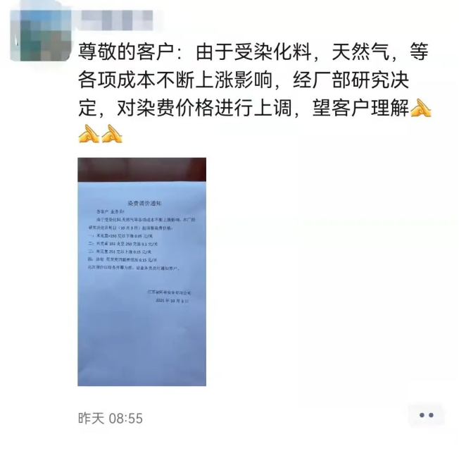 Due to the influence of the “dual control” policy, power rationing and production shutdowns, production capacity compression, in view of the current market conditions (raw materials, dyes, additives, steam, natural gas) and the continuous rise in various production costs, production costs have increased significantly. . Starting from October 1st, the second wave of dyeing fee increases is coming. Some printing and dyeing factories have issued notices that the processing fee prices of all products will increase. Please inquire before placing an order. We apologize for any inconvenience!