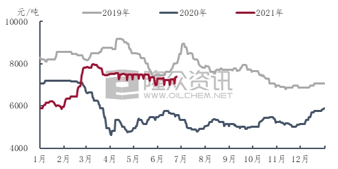 In the first half of 2021, domestic polyester filament prices showed a trend of fluctuation after rising. From the beginning of the year to mid-March, with the support of the cost side, factory production and sales increased, and filament prices continued to rise. Taking POY 150D/48F as an example, it rose from 5,900 yuan/ton at the beginning of the year to 7,975 yuan/ton in mid-March. More than 2,000 yuan/ton.