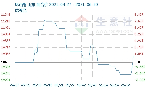 In early June, due to the cost boost of cyclohexanone, the upstream raw material of nylon, the ex-factory price of cyclohexanone was raised to 10,500-10,600 yuan/ton, but the high price lacked follow-up buying. In addition, after the maintenance of some caprolactam units, the demand for cyclohexanone from downstream nylon manufacturers decreased, and the spot supply increased. However, there was a lack of buying orders for chemical fibers, and the price of cyclohexanone fell. According to SunSirs monitoring data, as of June 18, the average domestic market price of cyclohexanone was 10,380 yuan/ton, a month-on-month decrease of 6.15%. The downstream support is weak, the wait-and-see sentiment is high, cyclohexanone is under pressure at a high level, the supply is abundant, and the focus of transactions is frustrated and lowered. At the end of June, quotations from hexanone manufacturers followed suit. As of June 30, the average domestic market price of cyclohexanone was 10,550 yuan/ton.