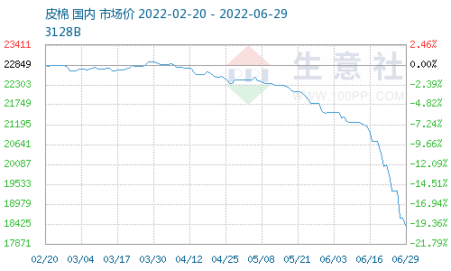 The average price of China Cotton Index 3128B grade on June 29 was 18,341 yuan/ton, an increase of 16 yuan/ton from the previous day. </p