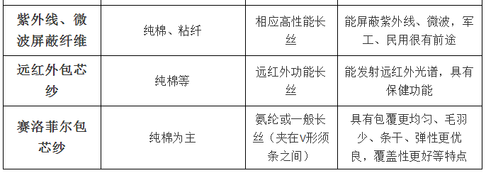 功能性、高性能织物包芯纱等。