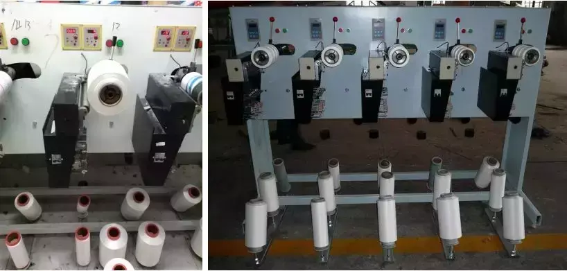 环锭纺、转杯纺、摩擦纺、喷气纺等都可加装包芯纱纺纱装置,生产各类包芯纱。