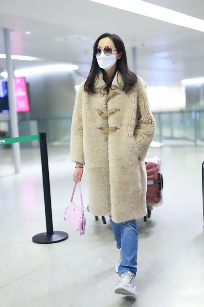 Han Xue is so good at dressing up! Wear a plush coat with a “pink” T-shirt to look simple and youthful.