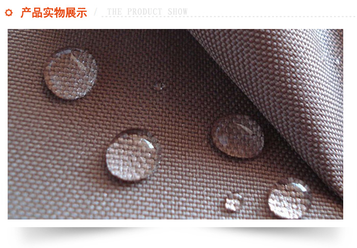 What we see when water disperses into small droplets on clothing and then slides off (as shown in the picture above) is usually because the fabric used has been treated with water-repellent treatment. The anti-repellent treatment is actually a covering. A layer of special treatment on the surface of the fabric, usually adding DWR (Durable Water Repellency) when the finished fabric is finalized, to obtain durable water-repellent properties. The purpose of using DWR coating is that when water drips onto the surface of the clothing, it can form small water droplets or directly slide off the surface of the clothing to prevent the fabric from absorbing water. At the same time, it also makes it easier to remove oil stains attached to the surface of the clothing. Most waterproof clothing uses this kind of DWR water-repellent treatment. The advantage of using DWR treatment is that the surface layer of the clothing does not absorb moisture, thereby ensuring that the waterproof fabric can achieve good breathability, so that the human body can wear it very well. Feel. —420D Oxford cloth