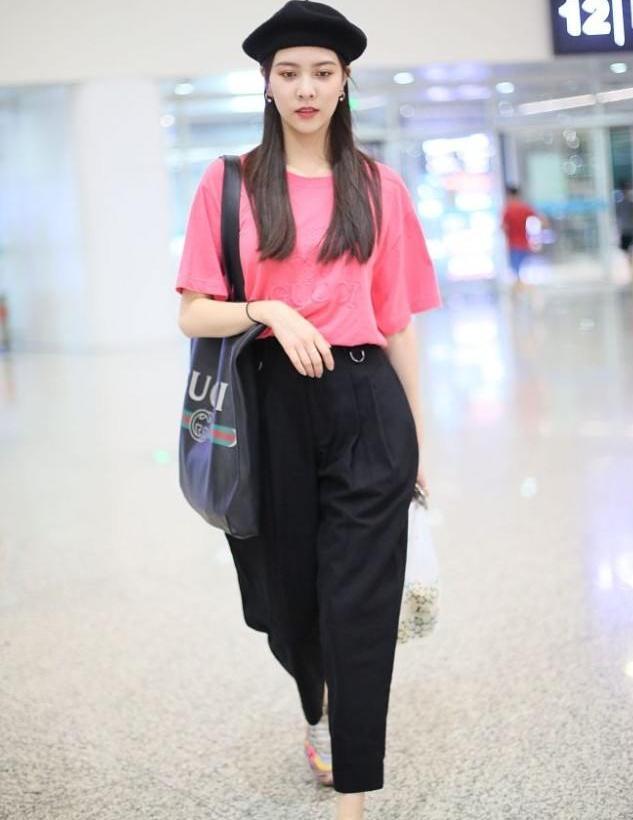 Carrot pants, as the name suggests, have trouser legs that look like carrots. They are designed to be wider at the top and narrower at the bottom. They can cover the flesh and are very comfortable to wear. Especially the loose trouser legs look very fashionable, and can also add a bit of hip-hop coolness to the look, making it look very youthful. Paired with the goose yellow lazy T-shirt worn by Liu Mintao, you can clearly feel the trend of young people.