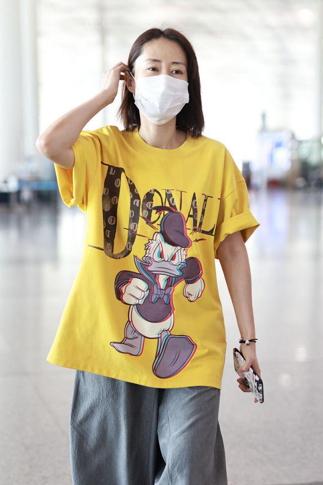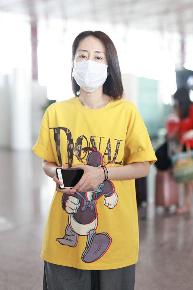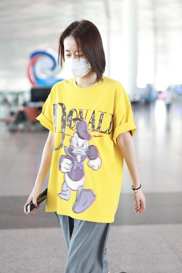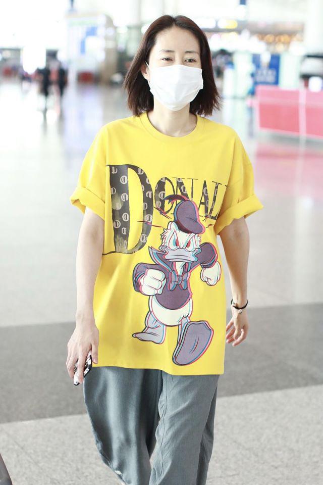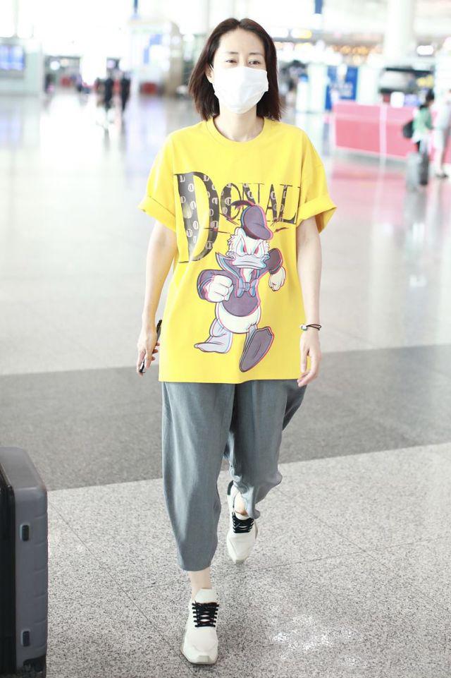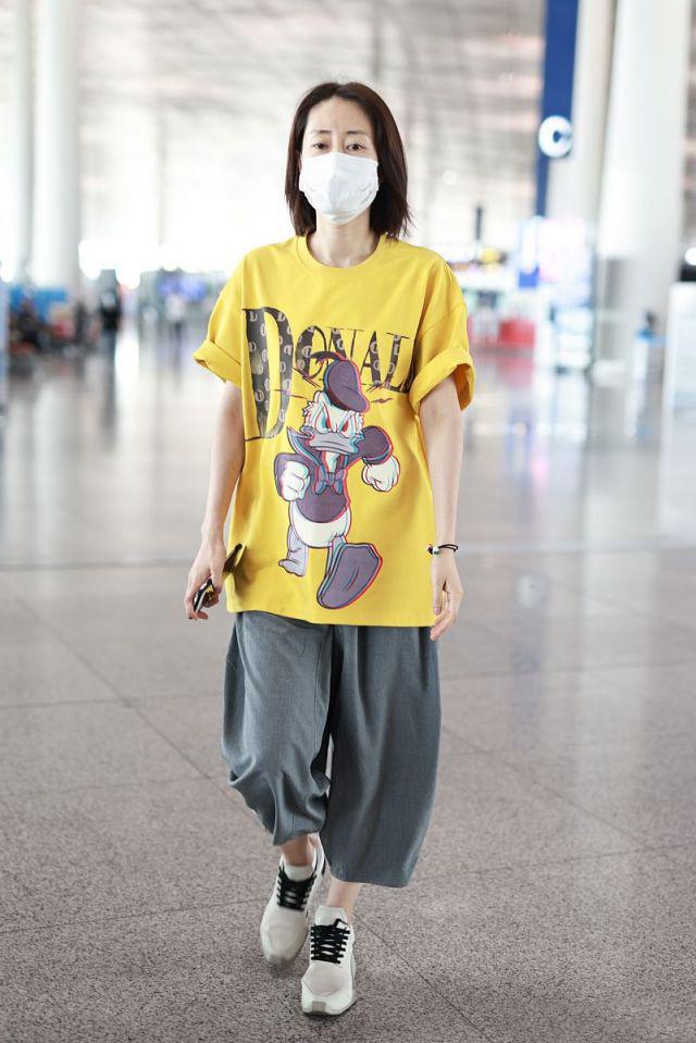 Look at Liu Mintao, who recently appeared at the airport. He was wearing a goose-yellow cartoon T-shirt and three-quarter carrot pants. He didn’t look like a 45-year-old aunt at all. He looked very young.