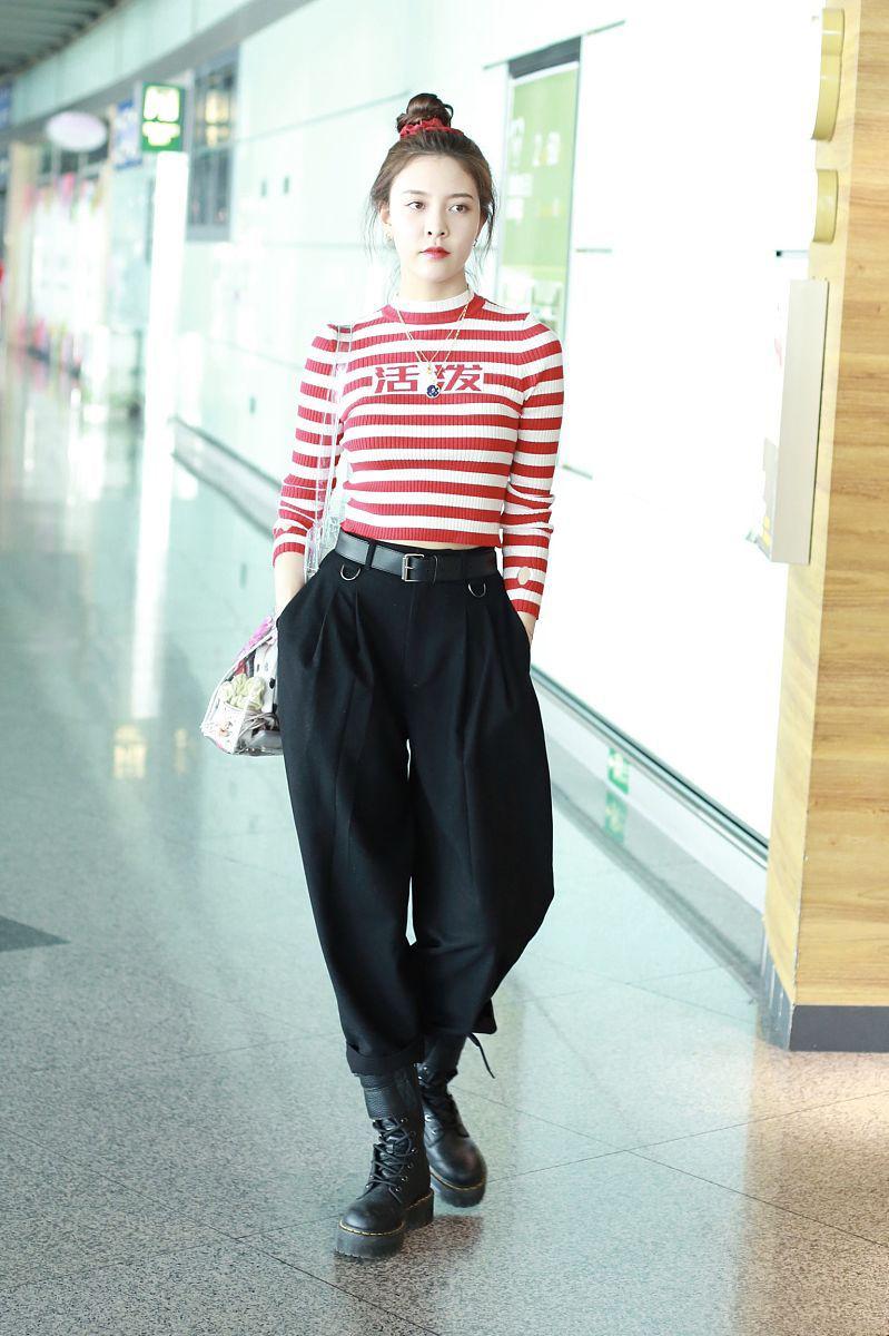 Like these black carrot pants paired with Martin boots, doesn’t it give you a sweet and sassy sense of déjà vu? The combination of the red striped sweater and the round hair adds a bit of cuteness to the look, and the body proportions are also perfectly displayed. It’s very fashionable, right?