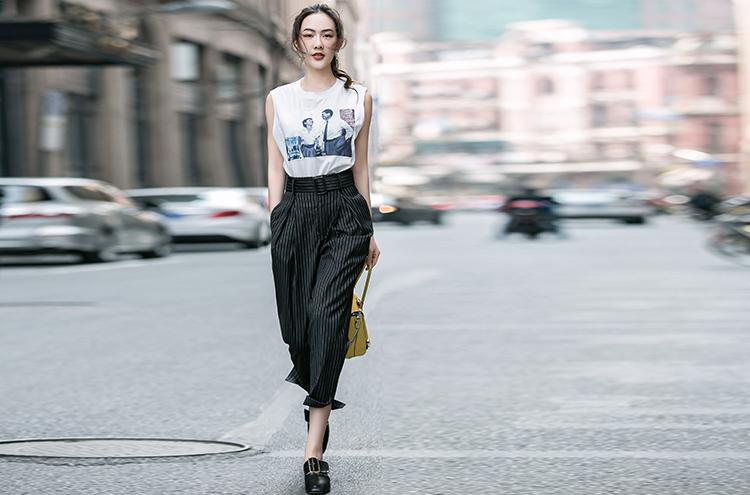After choosing the correct pants, the upper body The matching is relatively simple. An ordinary T-shirt can complete the entire look. If a woman has a good figure, she can choose to match it with a close-fitting T-shirt to make her figure more stylish. If you are a little fat or have a small belly, you might as well try a looser T-shirt, which will look energetic and fashionable when tucked into your pants.