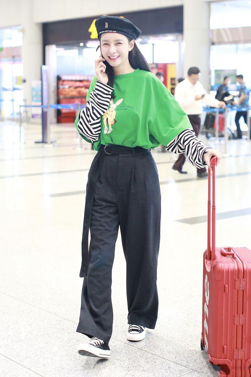 The sweatshirt Zhang Xiaofei wears is also very ordinary, but the softer white color is very refreshing, and it also has a certain blessing effect on the skin color, making it even brighter. However, pure white sweatshirts give people a bland visual effect, so Zhang Xiaofei chose the printed version, with red and green English letters and horizontal stripes, which not only increased the color of the shape, but also made the shape look very three-dimensional.