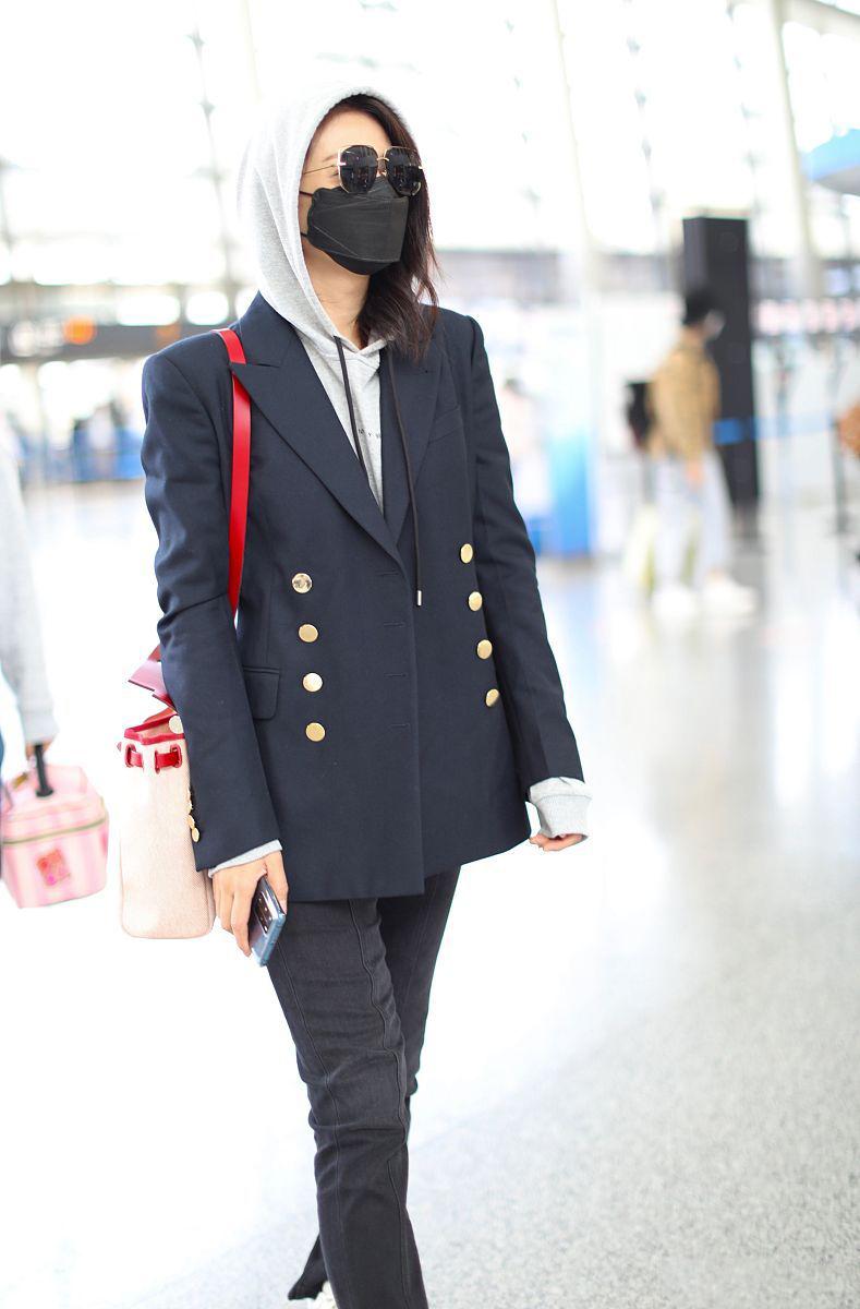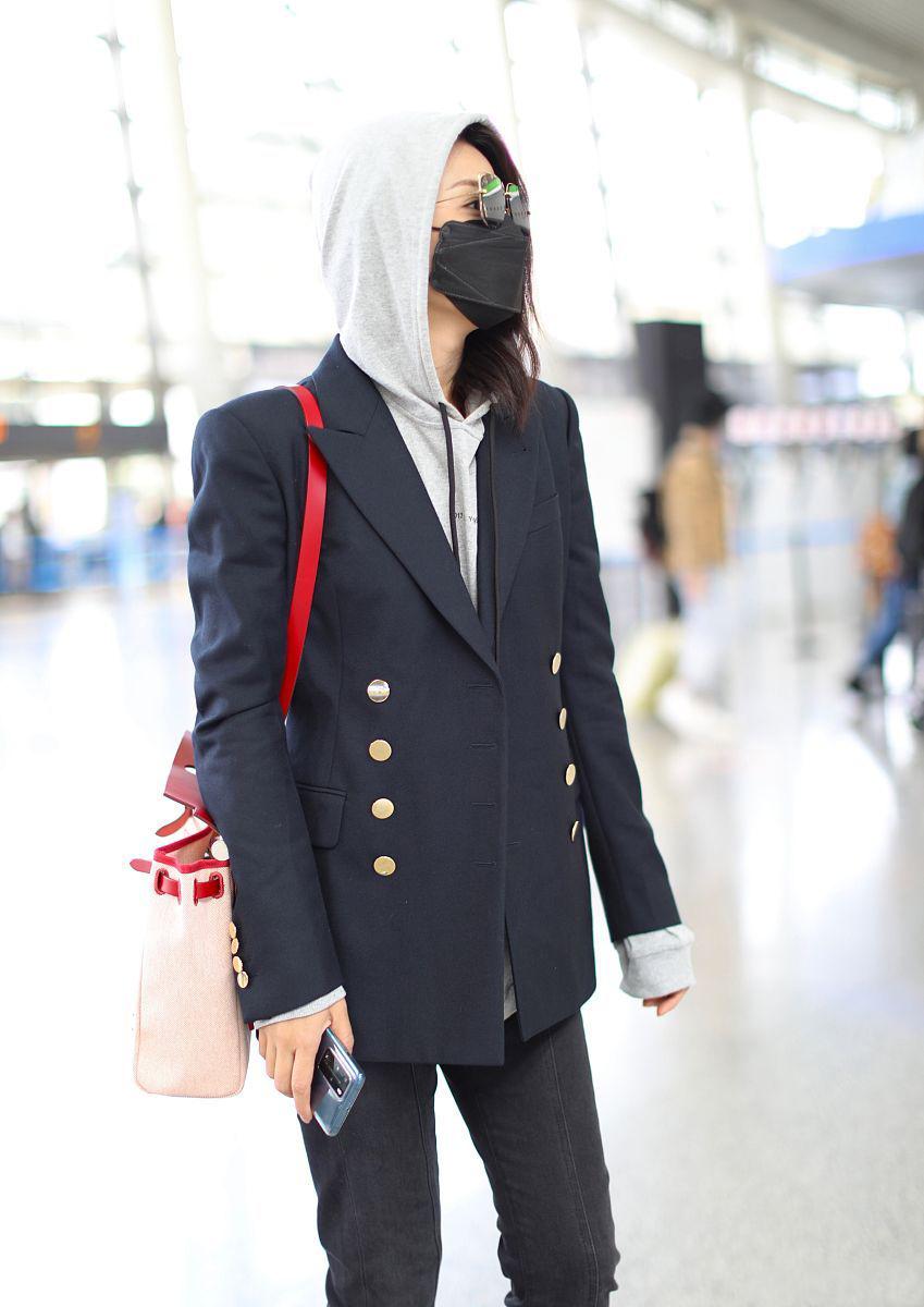 The reason why Liu Tao chose a gray sweatshirt is actually because this color is more versatile and more in line with the temperament of mature women. The effect is very friendly. Even with the integration of a red shoulder bag, it will not look out of place. .