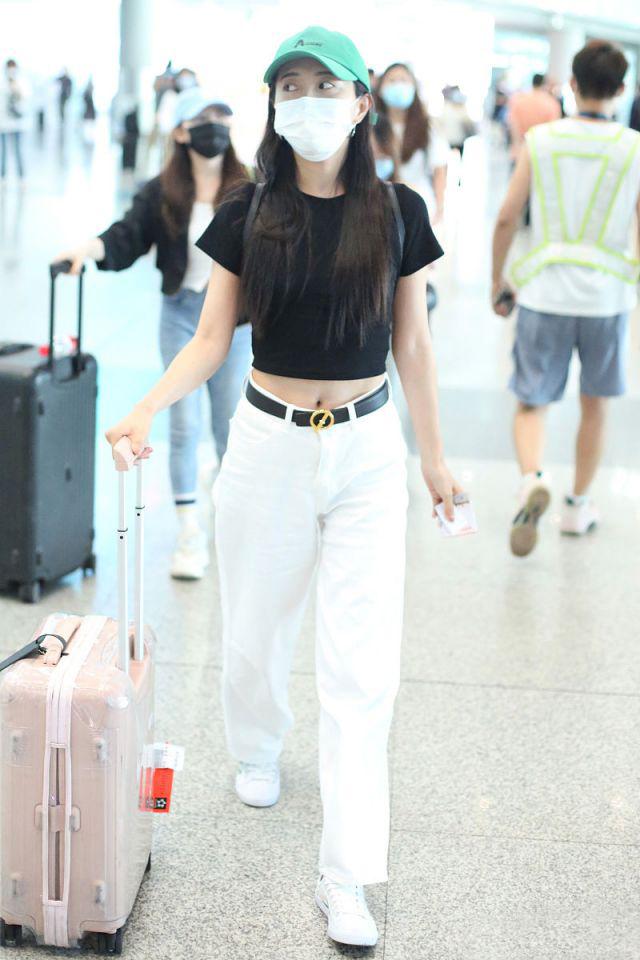 Bao Beier’s wife Bao Wenjing is the best example. She has a slim and beautiful figure and is very easy to dress. For example, this classic “black and white” look, “shows the waist” in a black short T-shirt. , white pants match a refreshing feeling, and the simple outfit is very energetic. Especially with the fashionable matching concept, the body proportions are also presented, showing long legs It’s sexy and charming without feeling vulgar.