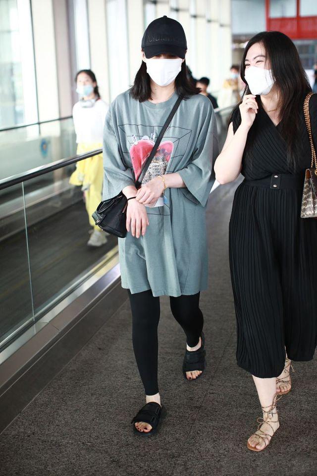 Jiang Qinqin is a good example. He wears a lazy T-shirt and black tights, which is casual and fashionable but wastes his figure. Jiang Qinqin’s original graceful figure completely disappeared under the cover of a loose T-shirt. Without a certain courage and temperament, I would not dare to try it. It is too unrestrained!