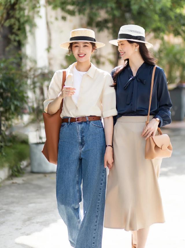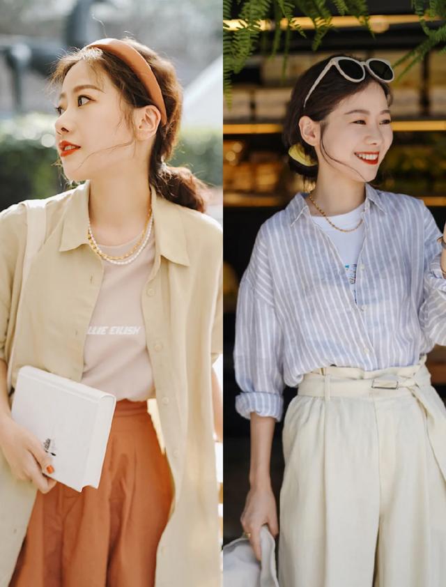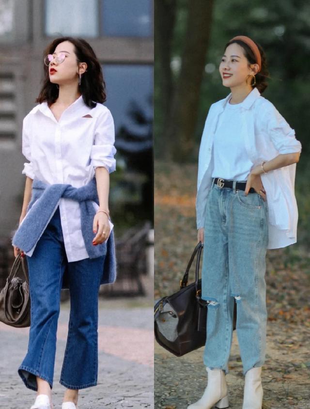 You might as well learn from the blogger’s style of beige shirt and white T-shirt. It is clean, tidy and looks very layered. Pair it with a pair of straight jeans to give you a perfect look. The clothes add a bit of casual fashion and look more fashionable.
