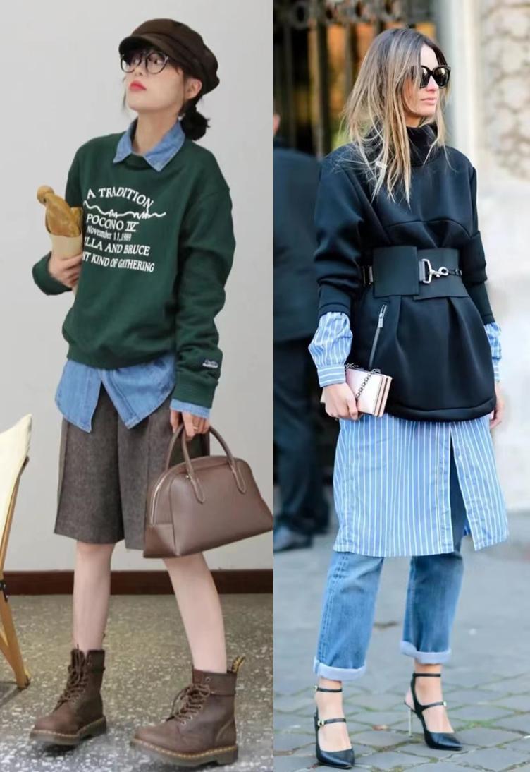 If you choose to layer these two types of jackets with sweatshirts, it is recommended that you try to match them with tights, so that the advantages of your figure can be well displayed , can also appear more feminine.