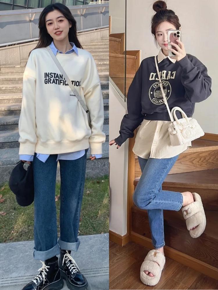 Sisters who like to wear sweatshirts in winter can try layering the above two inner garments, but if we want to make our outfit more fashionable, we must master the following Two key points: