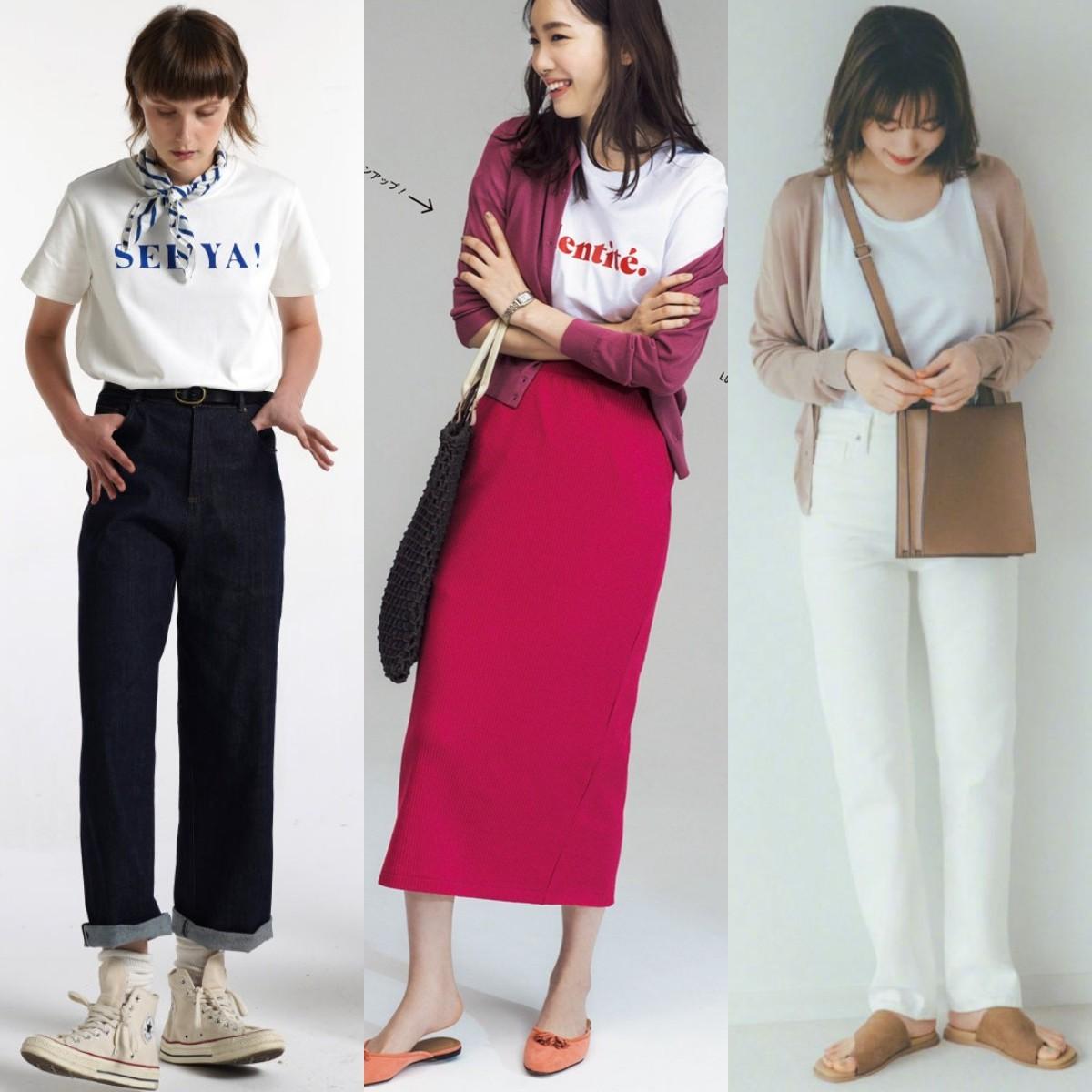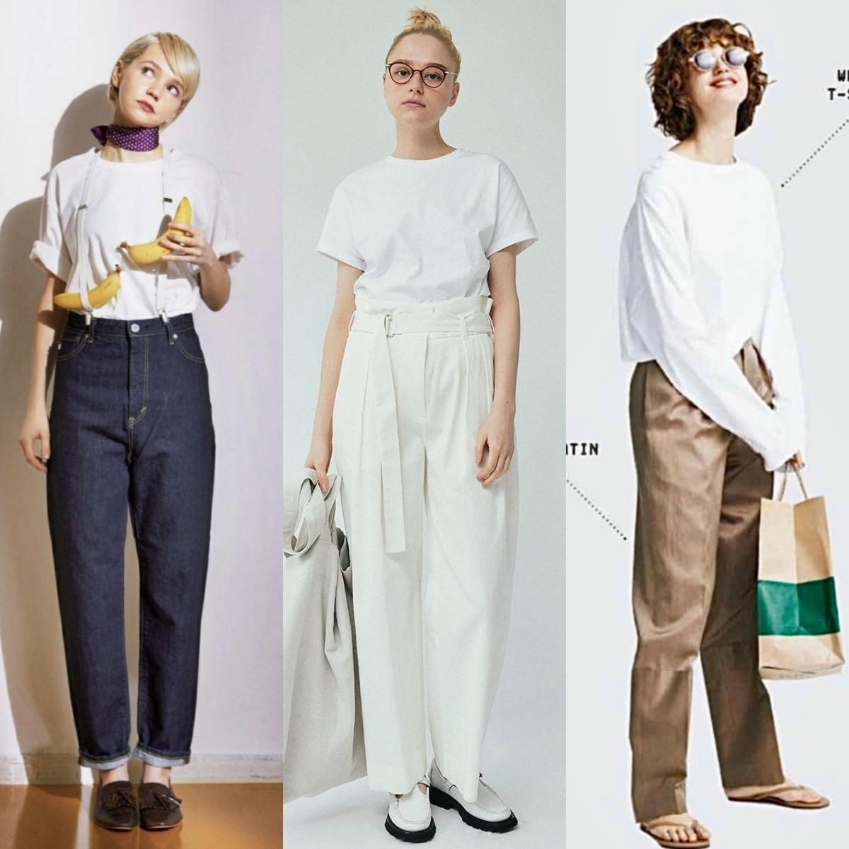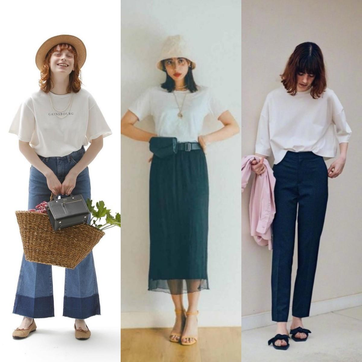 “White T-shirt + bottoms” matching ideas