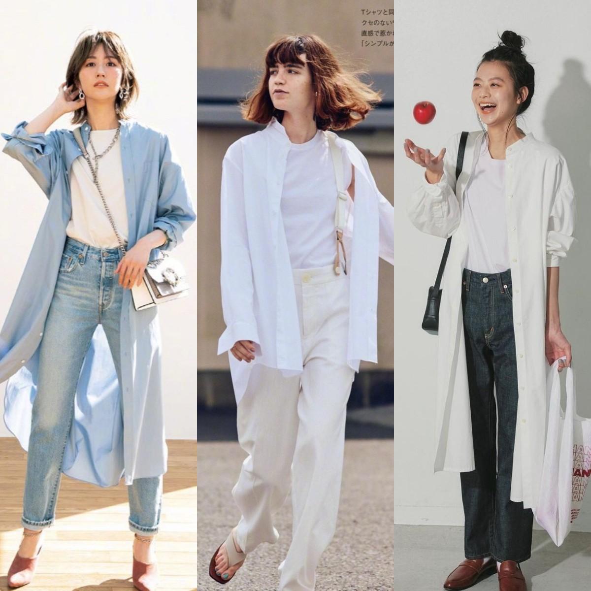 Compared with wide-leg pants, straight-leg pants are more slim-fitting and can better highlight the slender leg lines. The combination of white T-shirt and straight pants is clean and neat. Pair it with different styles of shoes, which can be formal or casual. Paired with simple straight pants, you can choose a white T with a pattern or a special cut span>, making the whole look simple but not simple. Nine-point straight pants are OK</sLong shirtis also a good choice,not only has the coolness of a shirt, but also It has the chic and straightforward style of a windbreaker.