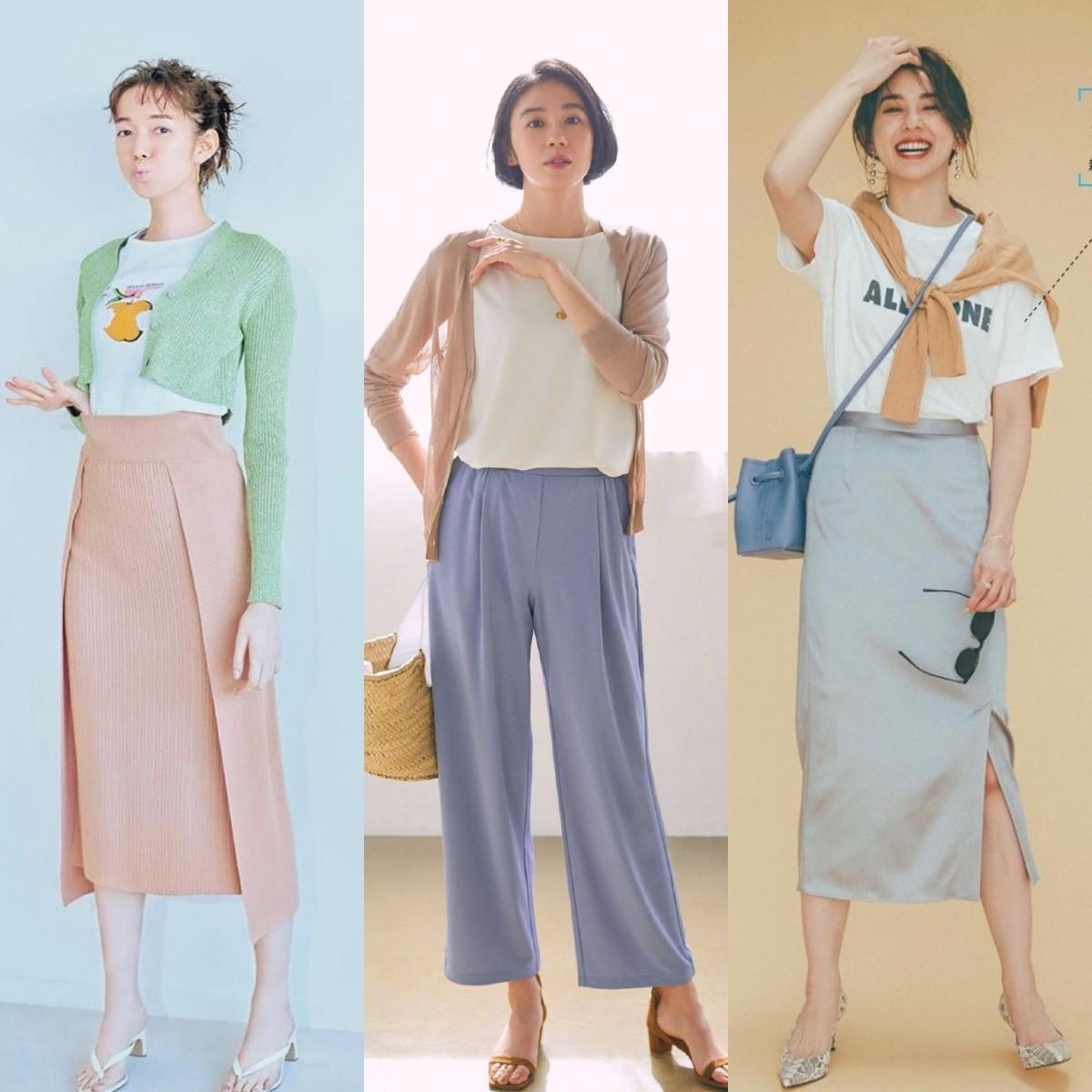 The soft knitted cardigan can make the white T become gentle and elegant. This kind of layering is very suitable for sisters who take the temperament route. Due tothe soft and waxy nature of knitted fabrics, it has a strong wrapping effect on shoulders and arms , so it is recommendedThe style of the T-shirt worn inside should not be too exaggerated, designs such as bat sleeves and dropped shoulder sleeves are not suitable, otherwise they will cause accumulation and affect the look and feel.