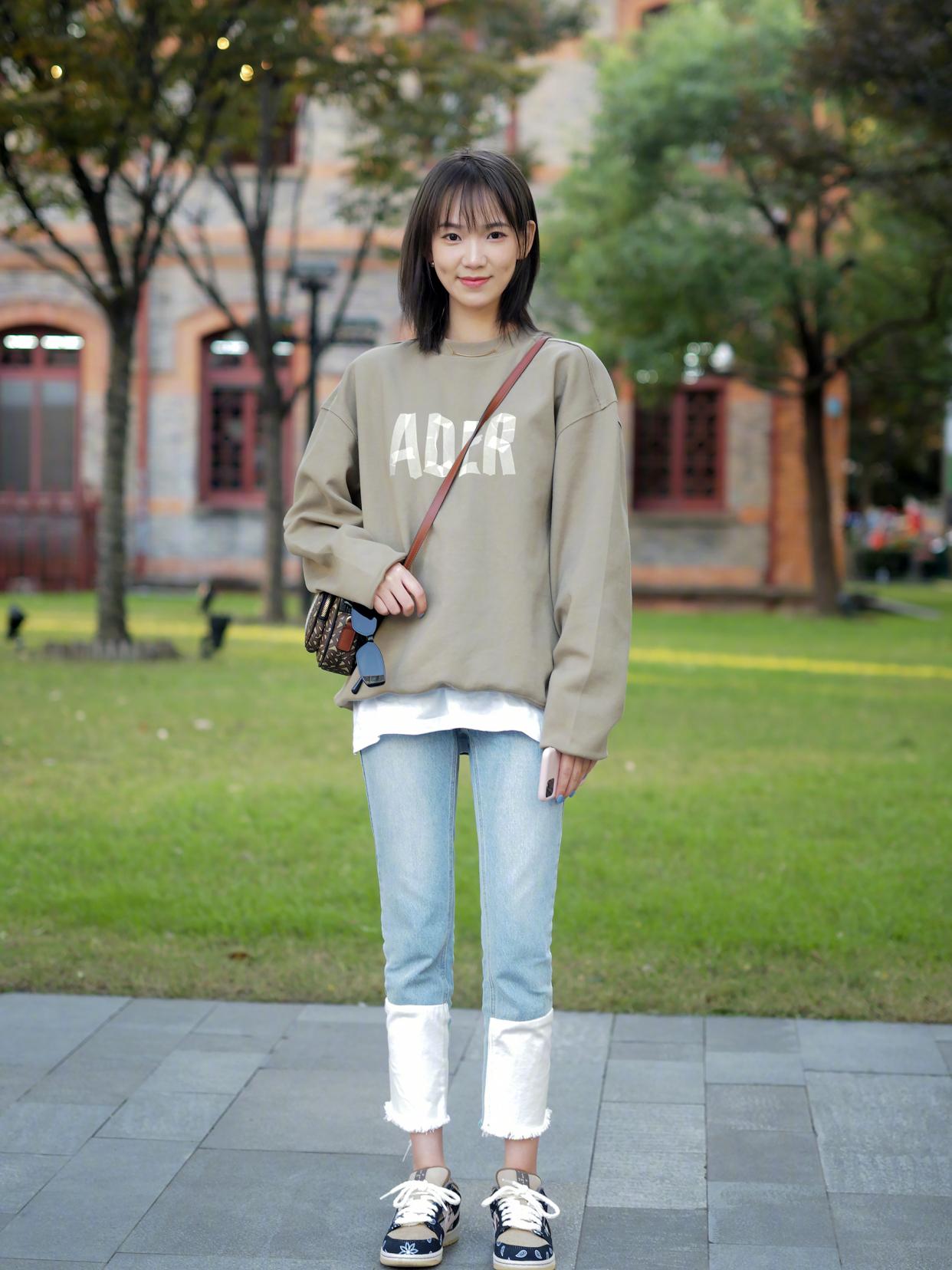 As mentioned above, early winter sweatshirts are generally loose styles, so it is easy to wear them bulky and cumbersome. So, how can we eliminate this bloat? The most commonly used method for matching is the “contrast effect”, which is what we often call wide at the top and narrow at the bottom. Since the upper body cannot be changed, then we can make a fuss about the lower body.