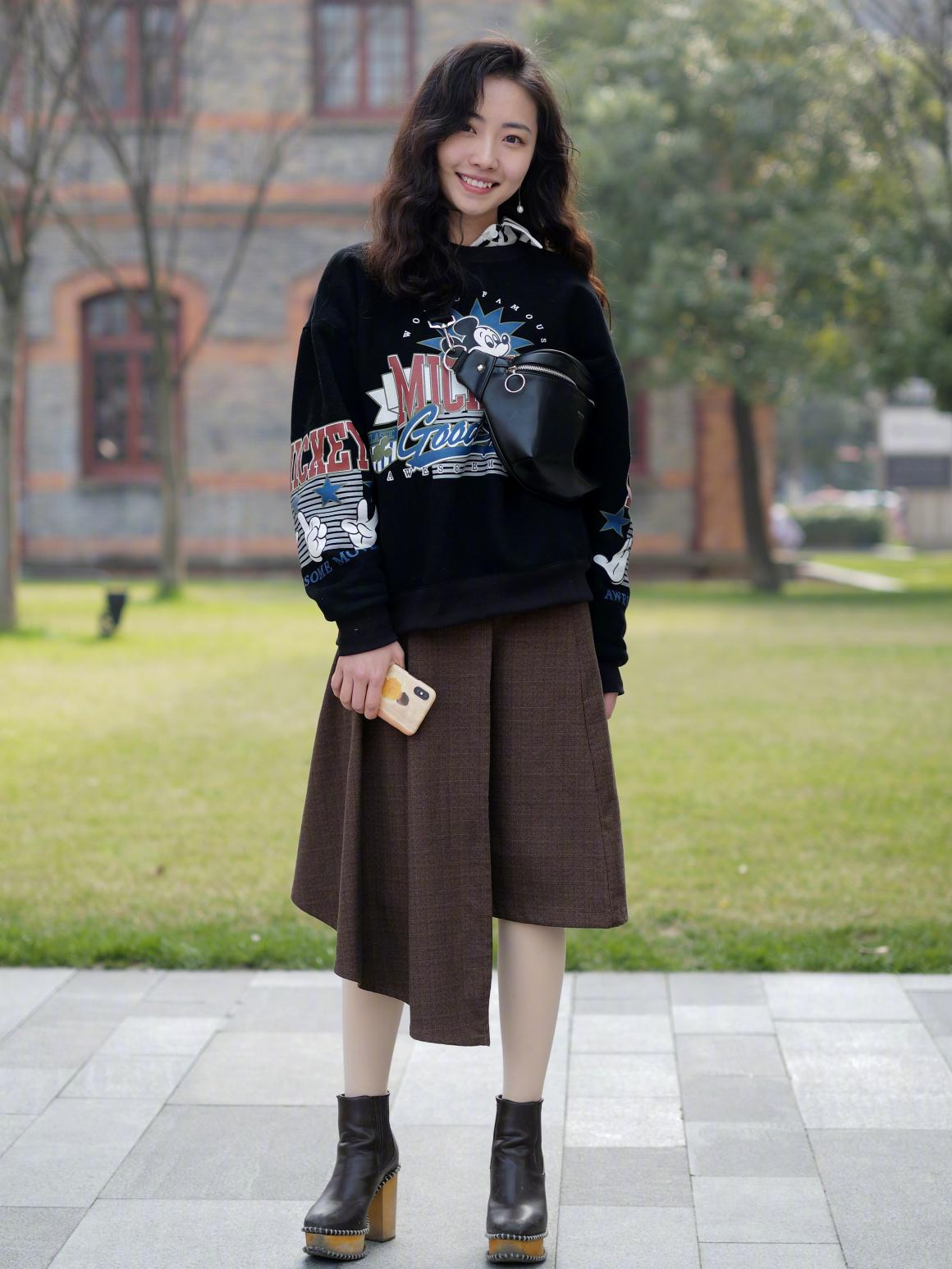 Since most sweatshirts in early winter are relatively loose, does it mean that they can only be worn outside and not as an inner layer? The answer is��is NO. Of course, matching still requires a lot of skills, especially when matching long coats. The most important thing we need to pay attention to is to choose a long coat with a visually shrinking color to match it, such as black, coffee, brown, etc. Wait, to suppress the fluffy feeling of the sweatshirt, so that the shape can be more harmonious without appearing fat.
