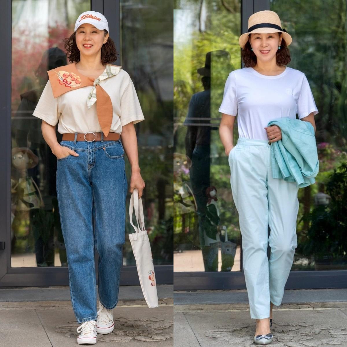 For many 60-year-old women, they have some troubles about their figure. If you also have a slightly fat figure, then when matching it with a T-shirt, Be sure to pay attention to the “tightness” of the shape. If yourdoes not have a lot of fat on your upper body, then I recommend you try it“Tighten up and loosen up”.