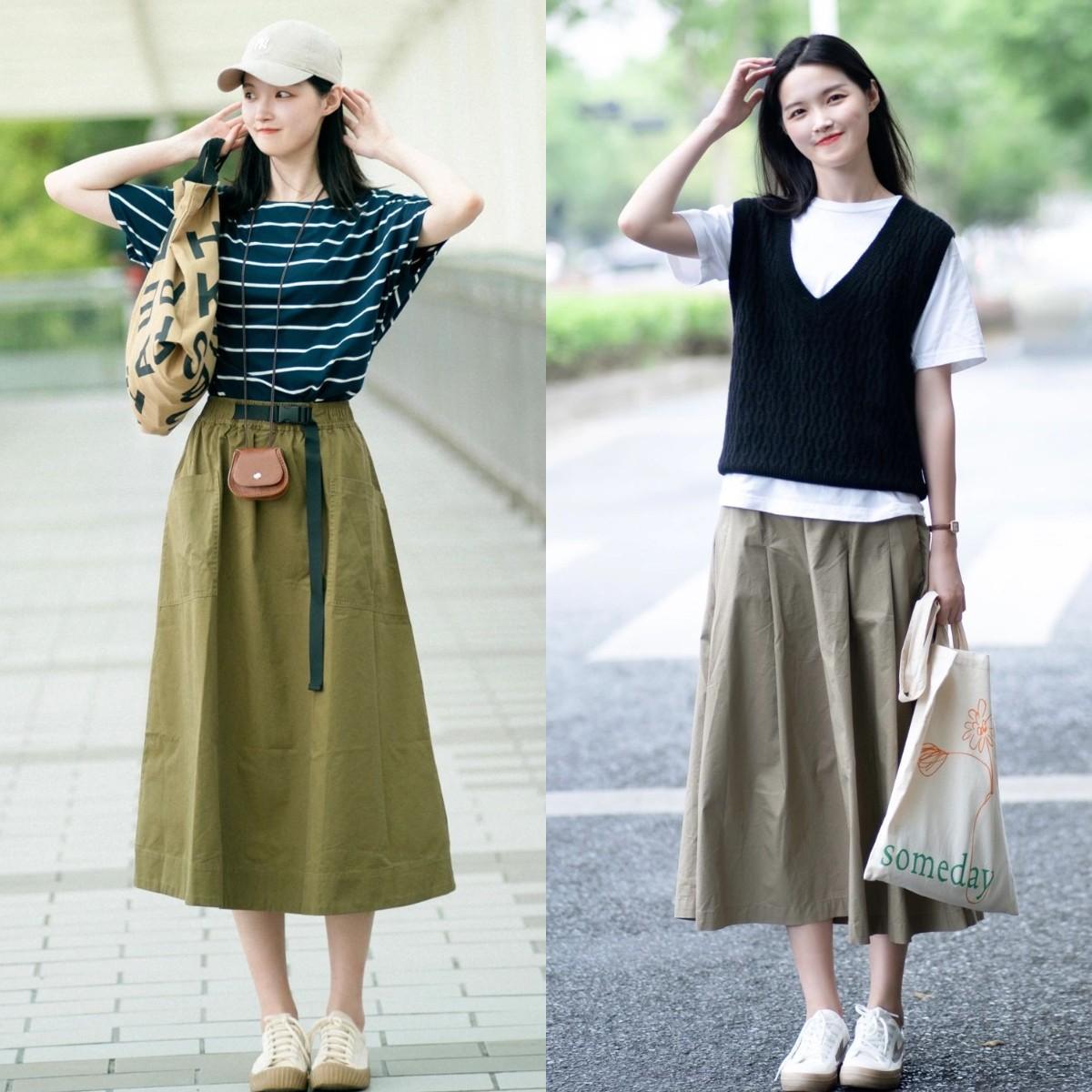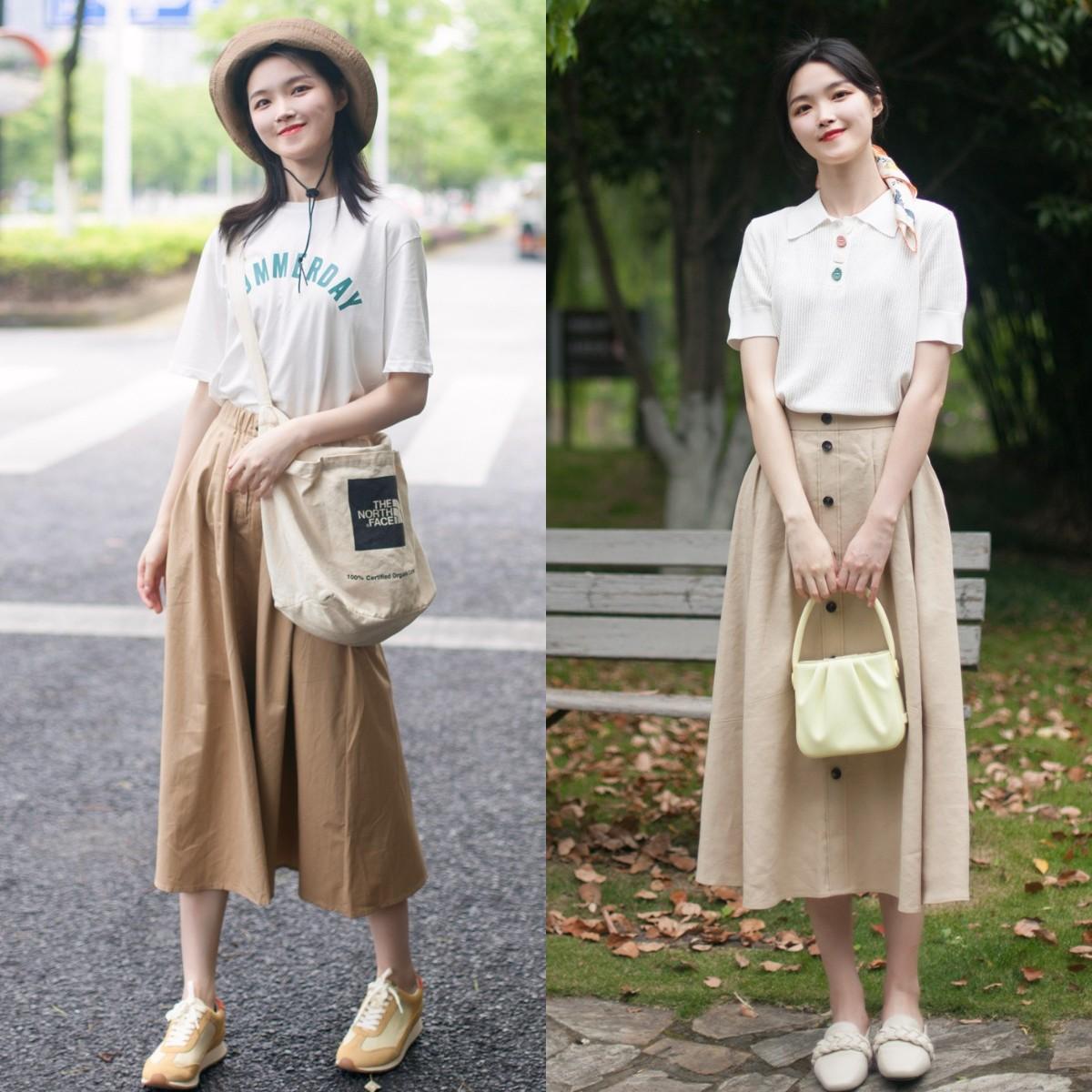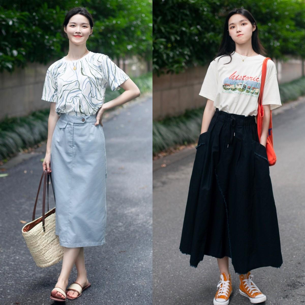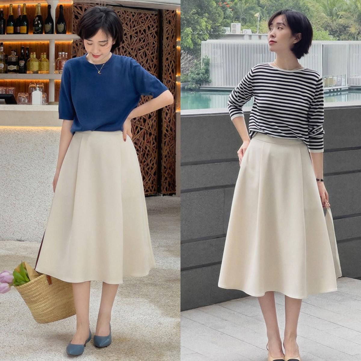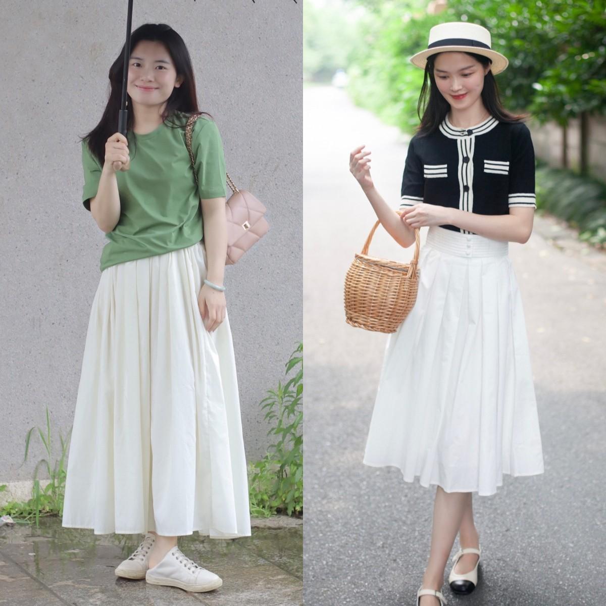 This year, why not try matching a T-shirt with a skirt? Use the skirt to add femininity, and combine it with the casual feel of the T-shirt to make your look fashionable and look younger. Very elegant, beautiful to the core every minute!