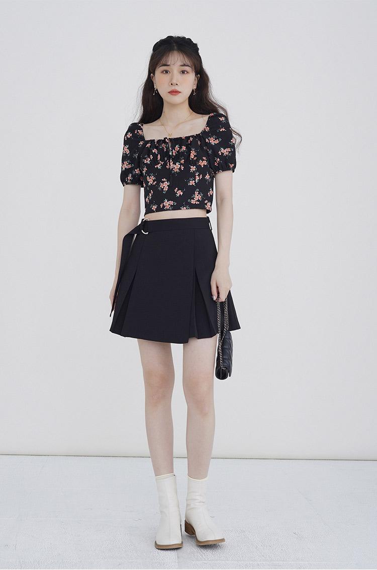 If the T-shirt you choose has a strong design, like the one in the picture belowSquare-neck T-shirt with puff sleeve design, then When choosing a skirt, you can try =”color: #333333; –tt-darkmode-color: #A3A3A3;”>Slightly simpler style. Focusing on highlighting the style of T-shirts not only reduces the rate of shirt collision and creates an eye-catching effect, but also prevents too many design elements from appearing cluttered.