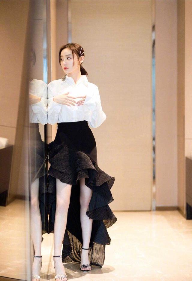 The combination of a white shirt and a hip skirt is shown Yuan Shanshan has a very petite side. The high-waisted hip skirt shows off her waist and lengthens the proportions of the legs. The fish hem design makes the whole outfit look very stylish