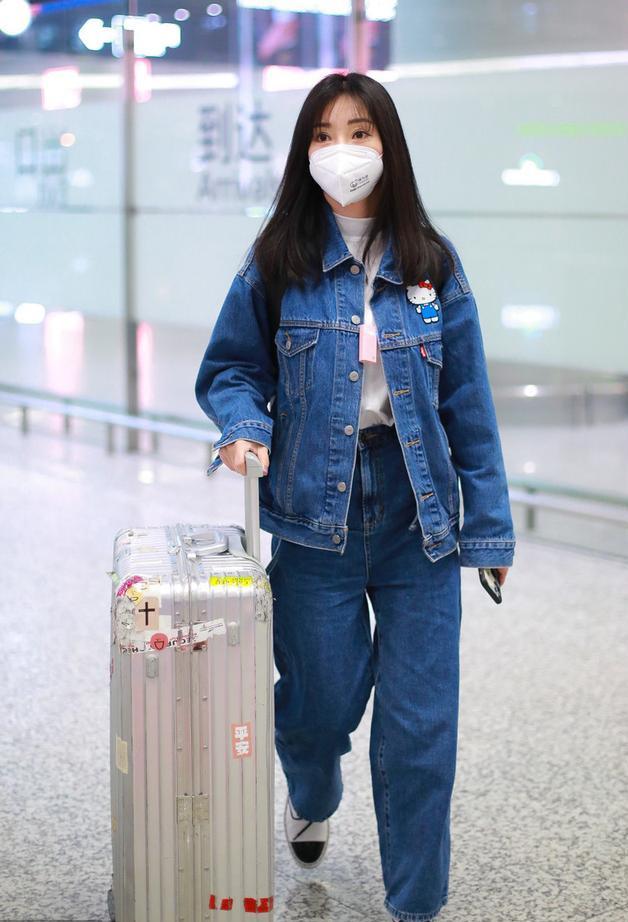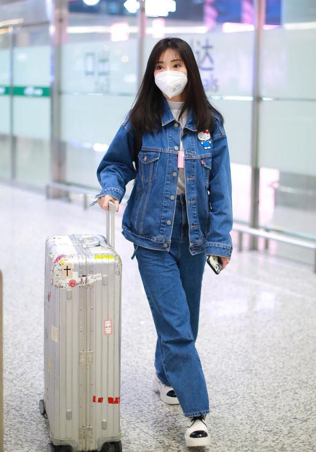 Liu Yan’s hairstyle has not been modified too much , looks very lazy and casual, and the natural droopy girly look is also very good, especially with air bangs, the age is halved! The overall look is girlish, and paired with black and white casual shoes, it adds a casual atmosphere to this outfit. The silver suitcase also neutralizes her overall color scheme, making it look softer and more comfortable