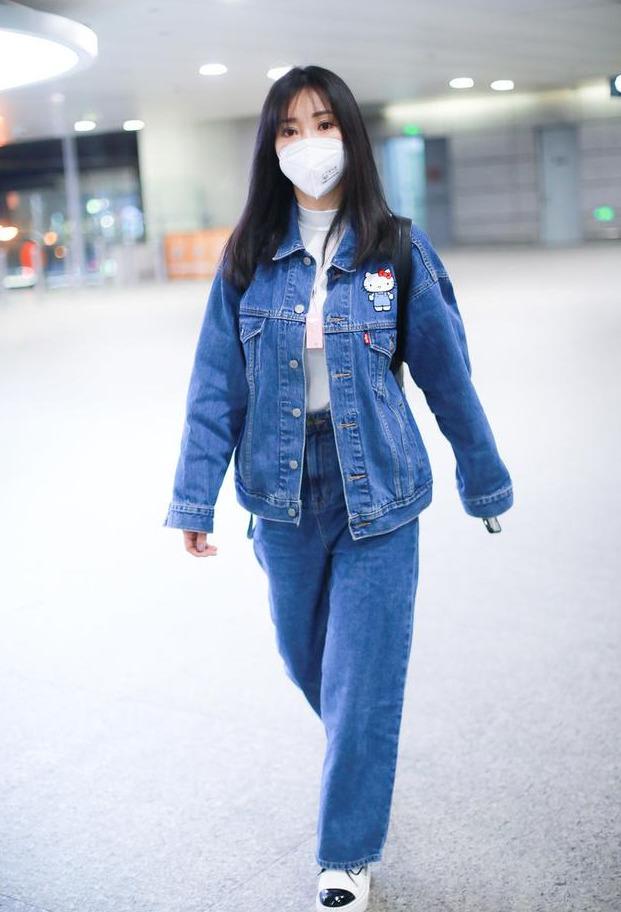 Liu Yan is not sexy and cute, Pair a denim suit with a white T-shirt for a girly look. Liu Yan chose a denim suit. The denim suit is a relatively retro suit. It was popular in the past, but recently the denim suit trend has become popular again. But the element of denim is an enduring element. The loose style of this blue denim top has a chic and casual feel. The cartoon kitten on the clothes is very eye-catching, making its presence visible at a glance. This kitten is very important. It not only enriches the style of the entire coat, but also allows Liu Yan to show her cute side, a very friendly girl