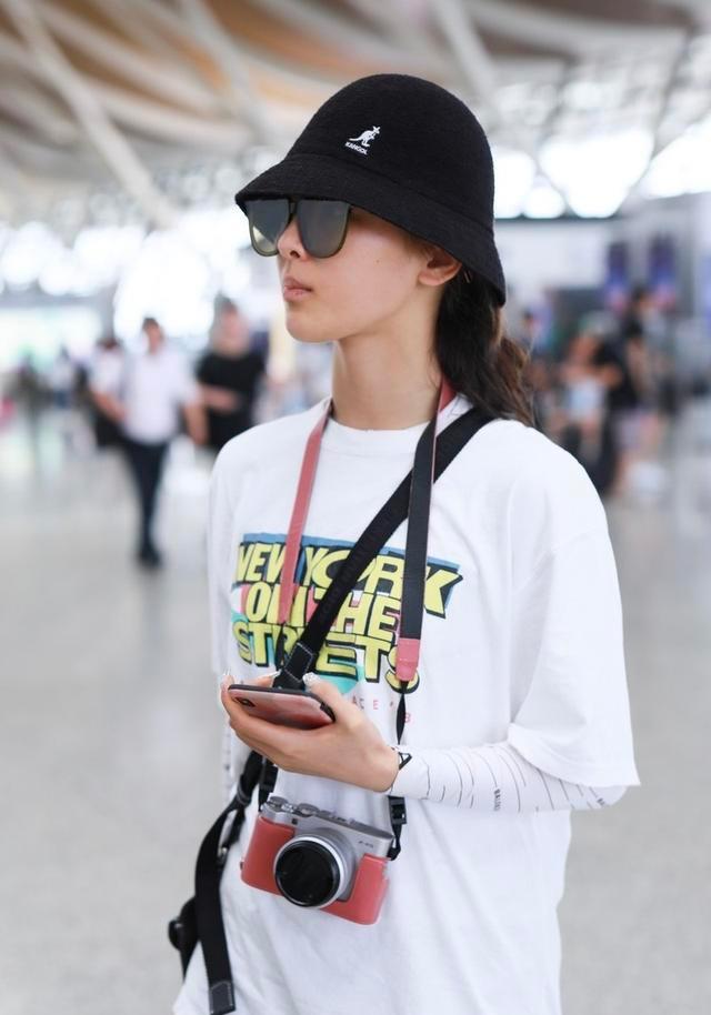 Although this outfit is simple, it perfectly brings out her youthful and lively temperament, and her bare face also makes her look young, even though She didn’t wear lipstick, and she looked dull, but she was still so beautiful. With such an exquisite appearance, no wonder she became so popular. Yang Chaoyue looks exquisite and her clothes are also very good. She paired this outfit with a black crossbody bag and a pink camera on her chest, which made her look even more gorgeous and fashionable.
