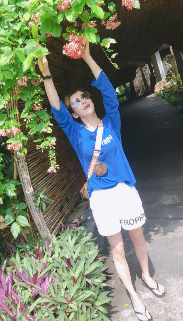 The cutest thing about her outfit is the other hairpins on her head. The yellow flowers are sweet and cute, full of childishness, and are tied in the kindergarten. It fits perfectly on the child’s head, but it doesn’t feel out of place when she wears it. Especially when she ties her hair into a ponytail, she looks even more youthful and energetic. She looks very sweet and playful, and doesn’t look like someone in her forties at all. middle-aged woman. The outfit she wore was simple but vibrant, pairing the shorts just right, and she’s also great at pairing them with other styles of shorts.