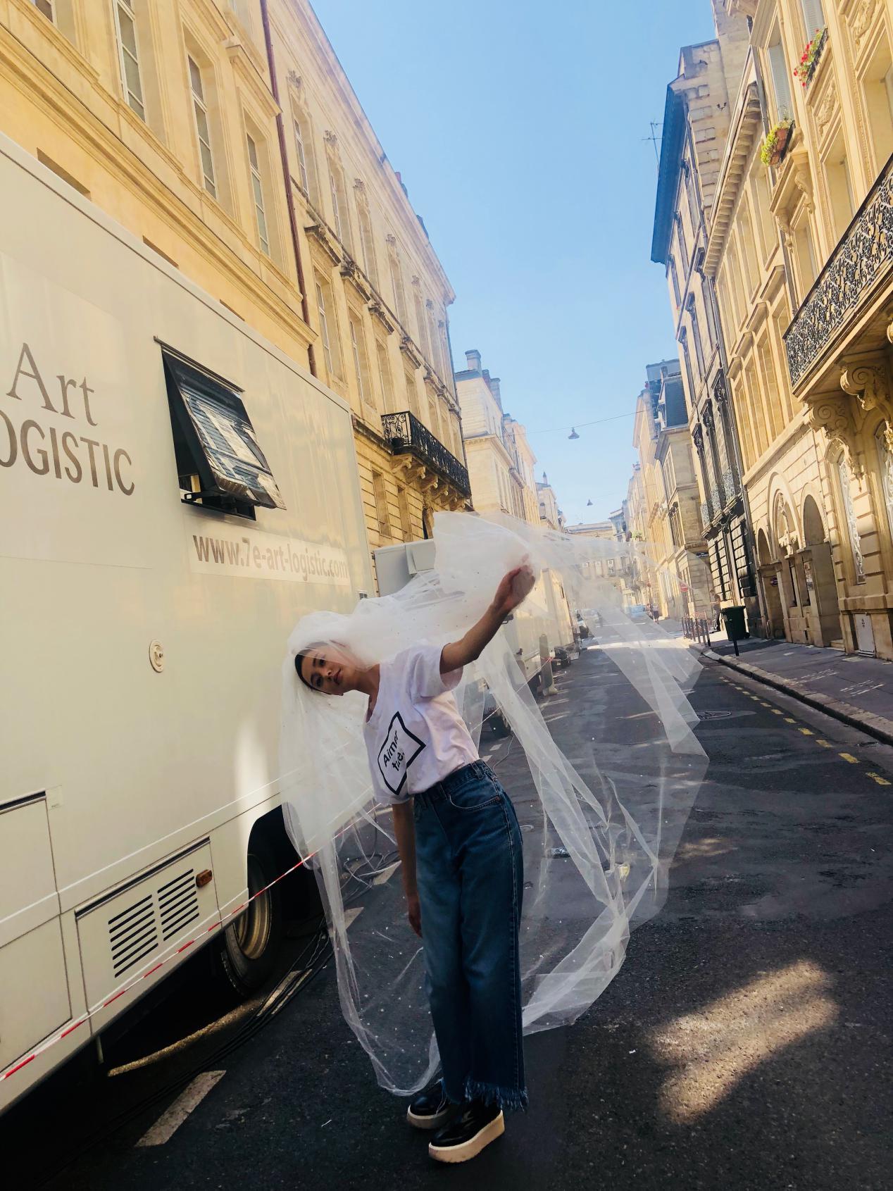 Zhang Tianai’s matching method is very clever. She is wearing an ordinary white short-sleeved shirt, and she wears a gorgeous The veil and unique style impact make this outfit very fashionable. Of course she doesn’t “hate getting married”, this is just a styling design for taking photos.