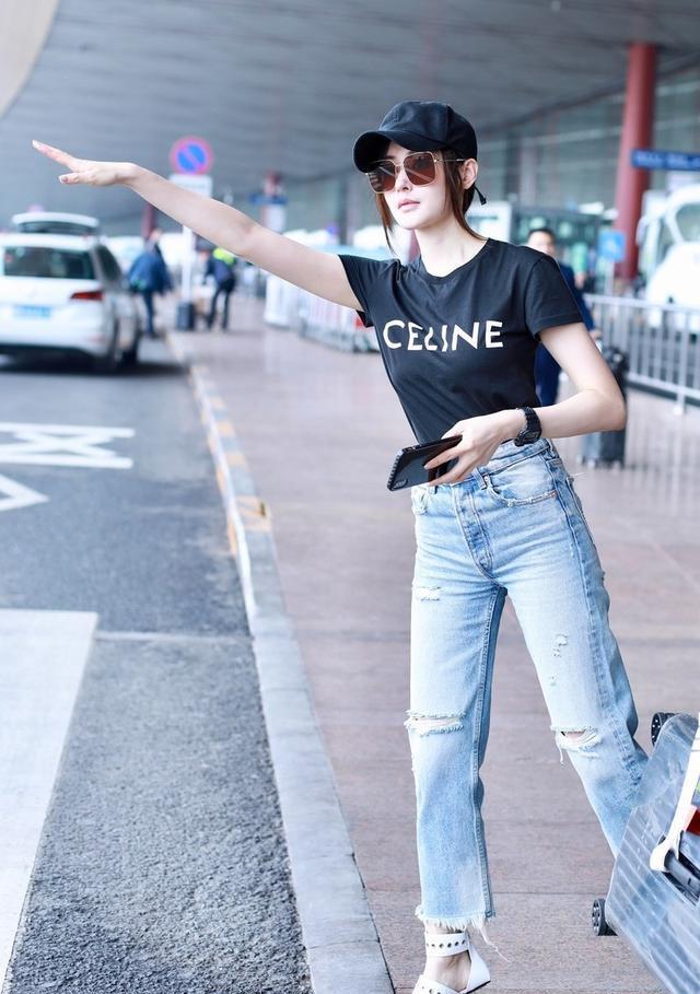 Short sleeves Pairing it with jeans is simple and everyday, but Zhang Tianai’s outfit is very unique. The tight short sleeves are more sexy, and the cool ripped pants make her handsome and free and easy. Ripped pants are different from ordinary jeans. The design of ripped holes is more unique and individual. It is extra uninhibited and looks very cool.