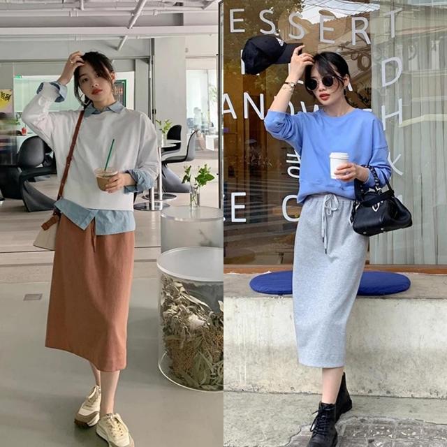 In spring, choose straight skirts, which are looser straight skirts. If you are on the fat side, straight skirts have a very good modification effect. The looseness of the sweatshirt combined with the loose straight skirt, which is wider at the top and wider at the bottom, makes you slimmer and covers your body. For thinner girls, you can choose a slim-fitting sweatshirt paired with an umbrella skirt to look more refined.