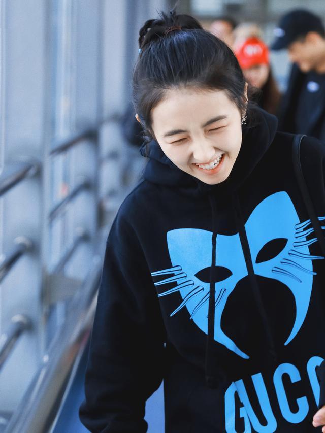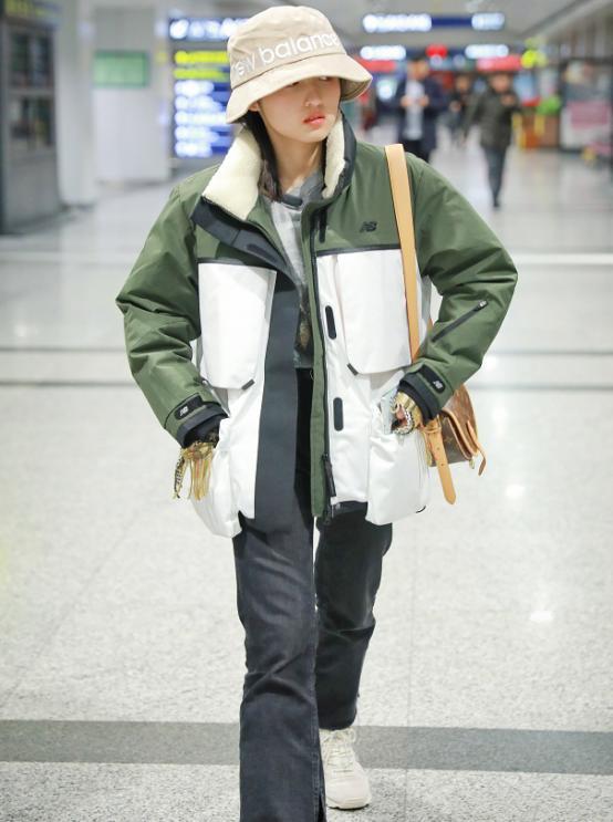 Zhang Zifeng is a girl who loves to laugh. No, when she saw fans at the airport, she looked happy again. The black and white spliced down jacket looks warm and handsome, and the fat style looks very flesh-covering. The lower body is still blue tight jeans, and the simple combination looks fresh and natural.