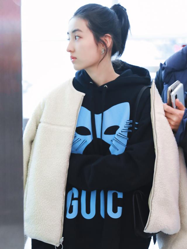 Zhang Zifeng later paired a white lambswool coat outside the sweatshirt. Black and colorful white are a very classic combination. This combination not only enhances the visual effect, but also keeps you warm and comfortable. It seems that Zhang Zifeng is very well-behaved and makes people shine.