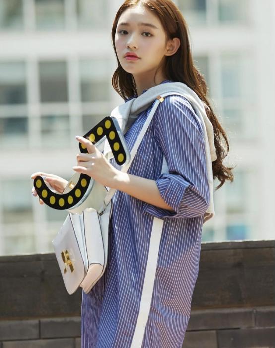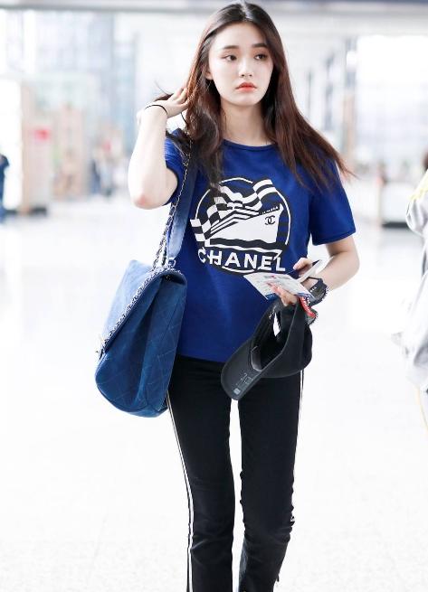 In fact, Lin Yun still pays great attention to temperament in the daily matching process, just like this blue and white vertical striped top, paired with a neat middle parting The hairstyle, with a white bag as a foil, is simple and fashionable.