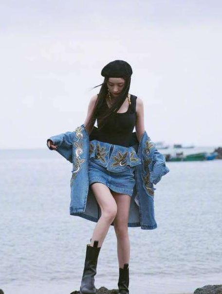 Yang Mi also tried the skirt style some time ago. The denim-style hip skirt made Yang Mi look delicate and sexy.
