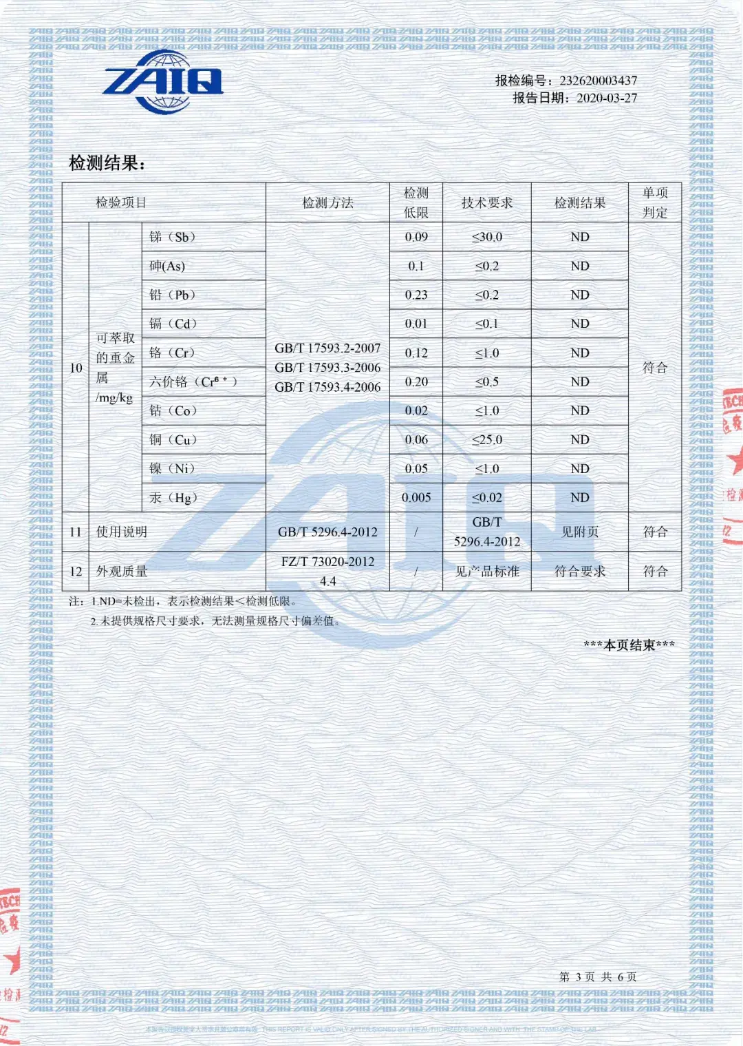 ●The composition and content of the raw materials used (children’s clothing usually contains 85% to 90% cotton);