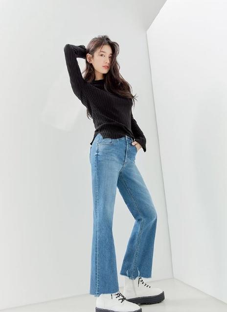 A black sweater paired with jeans is also very classic. Bae Suzy’s figure is so prominent that after putting on jeans with outstanding fit, her long legs are immediately revealed. I have to say that Bae Suzy is really a walking clothes hanger, quite eye-catching.
